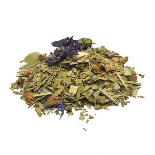 Ingrédients: Maté vert*, citronnelle*, bâtons de cannelle*, pomme*, romarin*, verveine*, arôme naturel de pêche, basilic*, fleurs de tilleul*, thym*, dent-de-lion*, pêche*, arôme naturel d’abricot, mauve*, spirulina*. *Issu de l‘agriculture biologique