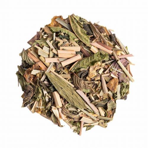 Ingrédients: Citronnelle*, écorces de citron*, maté vert*, gingembre*, menthe poivrée entière*, ortie*, mélisse*, verveine*, reine des prés*, verveine entière*, herbe de blé*, guarana*, racine de maca *, feuilles de moringa*. *Issu de l‘agriculture biologique