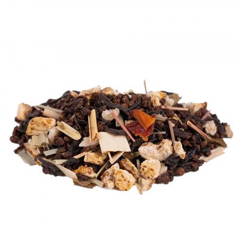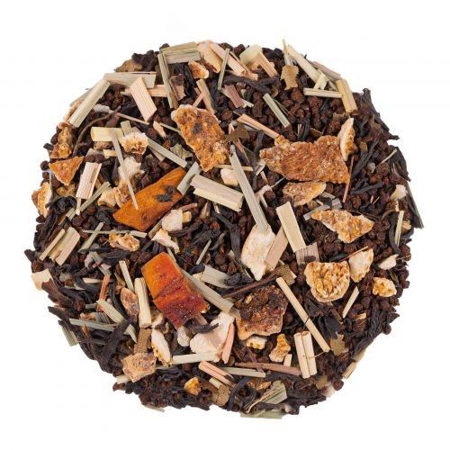 Ingrédients: Thé noir Assam CTC*, thé noir Assam*, -Inde du Sud*, écorces de citron*, citronnelle*, gingembre (gingembre, sucre de canne brut)*, arôme naturel de citron, papaye*, myrte citronnée*, Huile essentielle de citron vert*. *Issu de l‘agriculture biologique