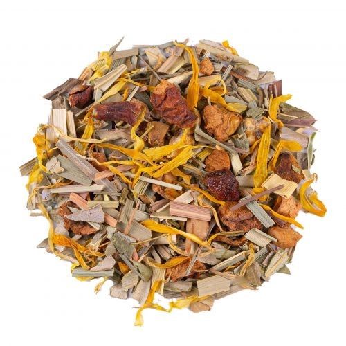 Ingrédients: Feuilles d'olivier*, citronnelle*, pomme*, morceaux de mangue*, papaye*, passiflore* (4%), arôme naturel de pêche, fleurs de souci*, arôme naturel de fruit de la passion. *Issu de l‘agriculture biologique