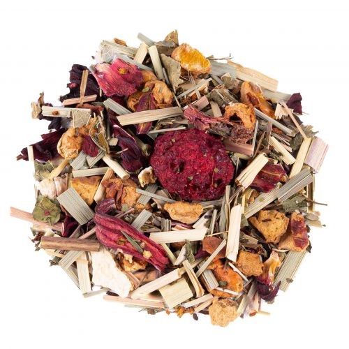 Ingrédients: Citronnelle*, Rooibos naturel*, menthe* (21%), pomme*, hibiscus*, arôme naturel de framboise, écorces de citron*, feuilles de framboisier* (3%), framboise* (2%). *Issu de l‘agriculture biologique