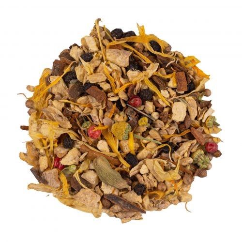 Ingrédients: Gingembre*, poivre noir*, bâtons de cannelle*, cannelle Ceylan*, camomille*, graine de coriandre*, fleurs de souci*, poivre rose*, cardamome*, cardamome moulue*. *Issu de l‘agriculture biologique