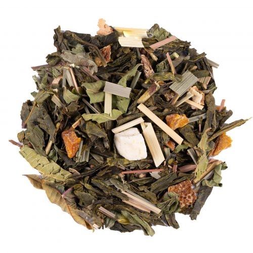 Ingrédients: Thé vert China Sencha*, citronnelle*, écorces de citron*, morceaux de mangue* (6%), menthe poivrée entière*, CARAMEL (SUCRE, ARÔME NATUREL)*, arôme naturel de mangue, verveine entière*, mangue* (2%), arôme naturel de menthe poivrée. *Issu de l‘agriculture biologique