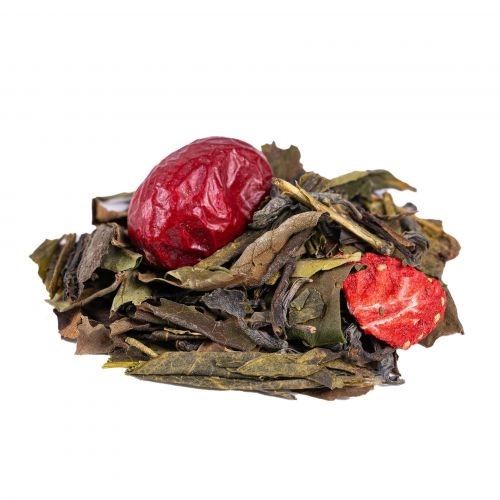 Ingrédients: Thé vert China Sencha*, thé vert China Chun Mee*, thé blanc Pai Mu Tan*, thé vert Darjeeling OP*, thé vert China Genmaicha*, arôme naturel de fraise, thé vert China Lung Ching*, canneberge*, fraise*, thé vert China Pi Lo Chun*, arôme naturel de canneberge. *Issu de l‘agriculture biologique