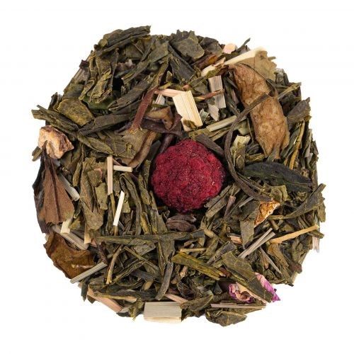 Ingrédients: Thé vert China Sencha*, citronnelle*, thé blanc Pai Mu Tan*, écorces de citron*, arôme naturel de framboise, arôme naturel de citron, framboise*, pétales de rose*, arôme naturel de bergamote. *Issu de l‘agriculture biologique