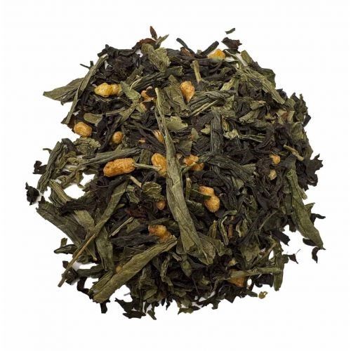 Ingrédients: Thé vert China Genmaicha*, thé noir Assam*, -Inde du Sud*, arôme naturel de fève tonka, Huile Essentielle de Citron*, arôme naturel d’AMANDE AMÈRE. *Issu de l‘agriculture biologique