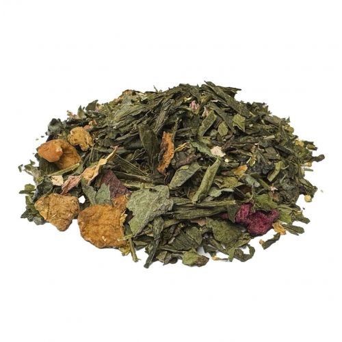Ingrédients: Thé vert China Sencha*, pomme*, Menthe à la pomme*, betterave rouge*, fleurs de sureau*, griotte*, arôme naturel de cerise, arôme naturel de rose, canneberge*, pétales de rose*, pop-corn*, arôme naturel de fève tonka. *Issu de l‘agriculture biologique