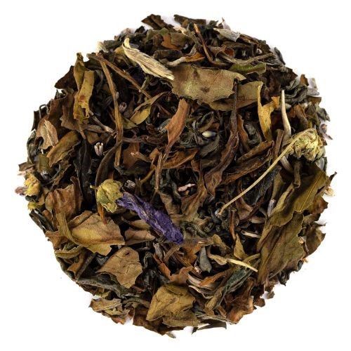 Ingrédients: Thé blanc Pai Mu Tan*, thé vert China Chun Mee*, anis*, lavande*, arôme naturel de lavande, badiane*, mauve*, extrait de vanille*, arôme naturel d’anis. *Issu de l‘agriculture biologique