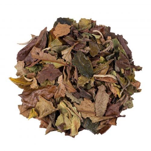 Thé blanc avec une feuille verte-marron et beaucoup de pointes blanches. Fleuri et doux avec une liqueur parfumée. Issu de l‘agriculture biologique