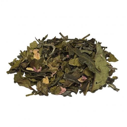 Ingrédients: Thé blanc Pai Mu Tan*, thé vert China Chun Mee*, arôme naturel de fraise, arôme naturel de vanille, pétales de rose*. *Issu de l‘agriculture biologique