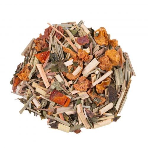 Ingrédients: Citronnelle*, pomme*, menthe poivrée*, papaye*, gingembre (gingembre, sucre de canne brut)*, arôme naturel d’ananas, ananas*, extrait de vanille*, arôme naturel de citron. *Issu de l‘agriculture biologique